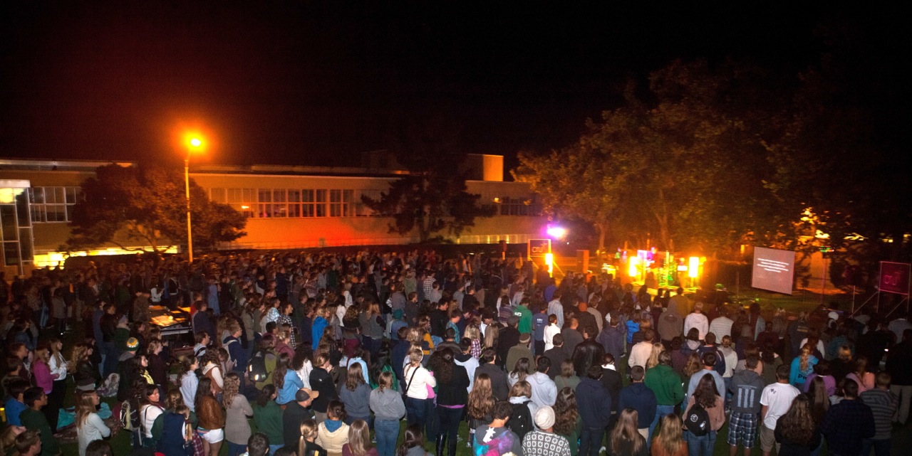 A picture worth a thousand words: one thousand students Tuesday night September 18th on Dexter Lawn at Cru’s kick off meeting (click on the image for a larger version).