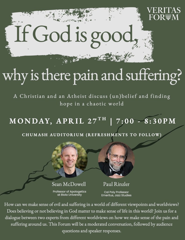 Please join us for the Cal Poly Veritas Forum Monday evening April 27, 2026.